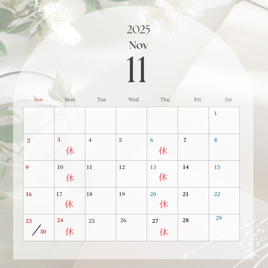 11 月の休診日は、毎週月曜日・木曜日でございます。