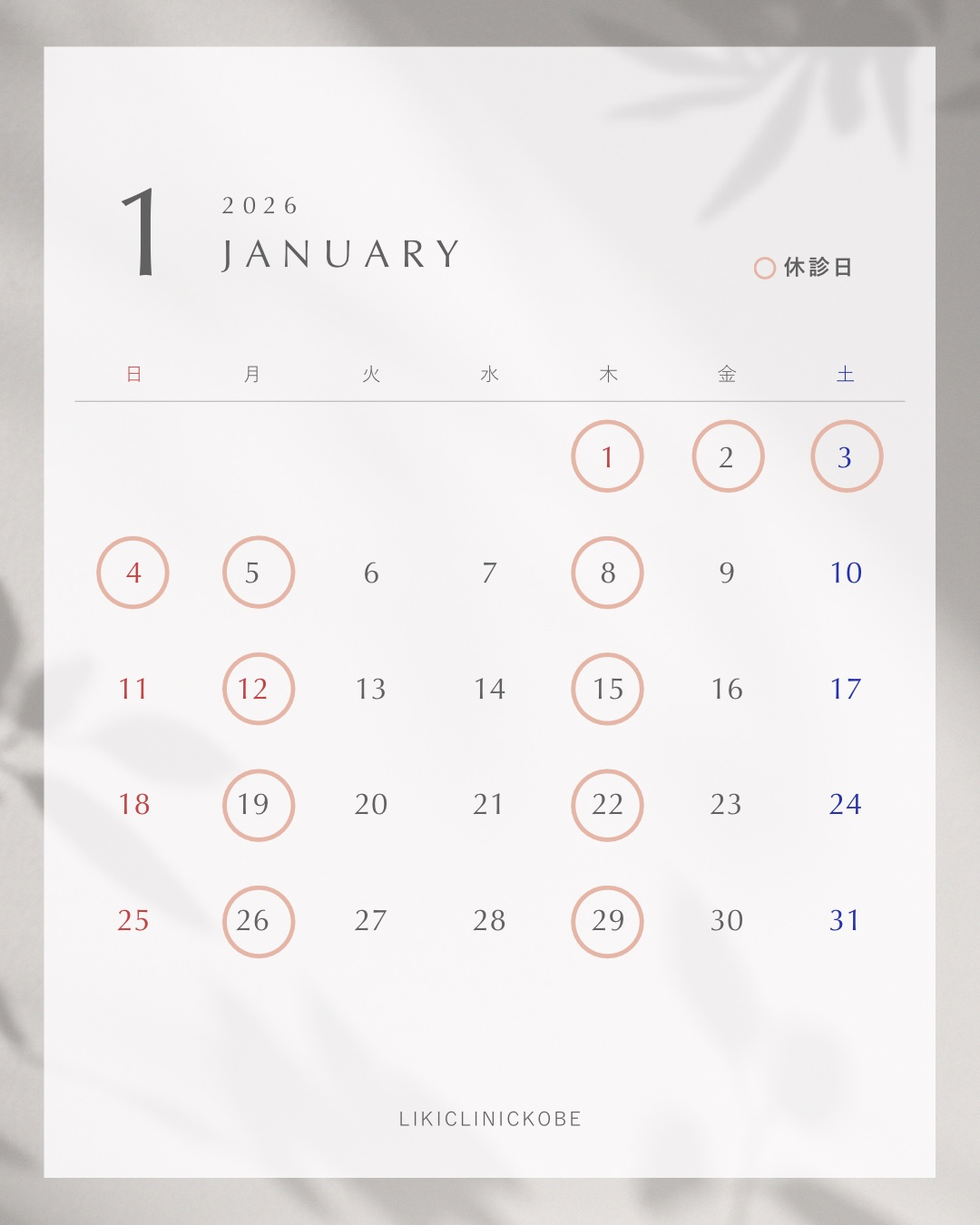 2026年1 月の休診日は、1日(木)~5日(月)までと、