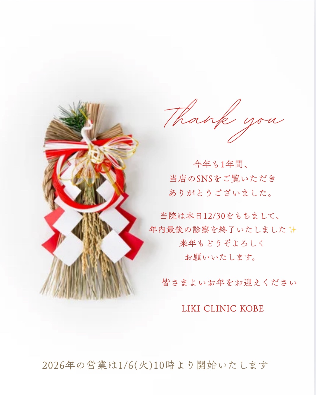 年の瀬を迎え、今年も残すところあとわずかとなりました😊✨