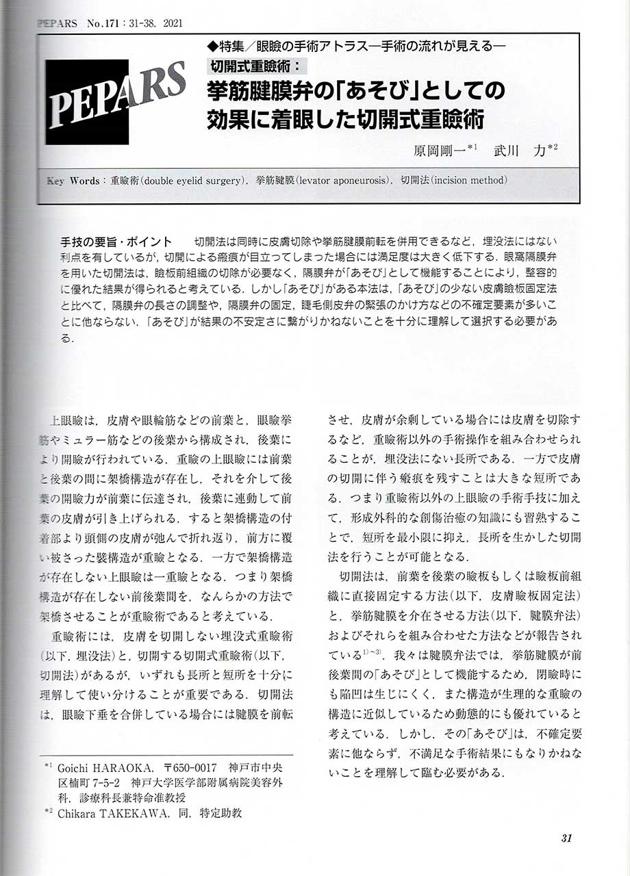 【論文タイトル】挙筋腱膜弁の「あそび」としての効果に着眼した切開式重瞼術